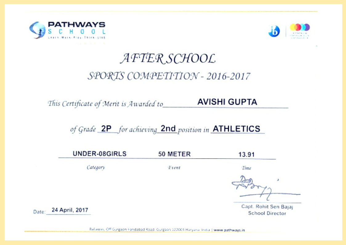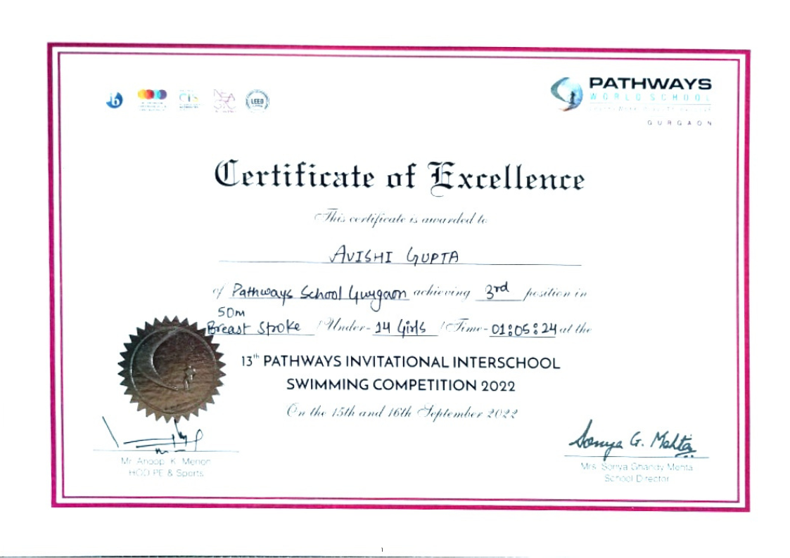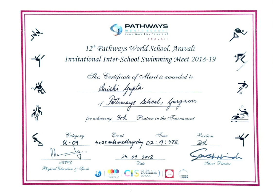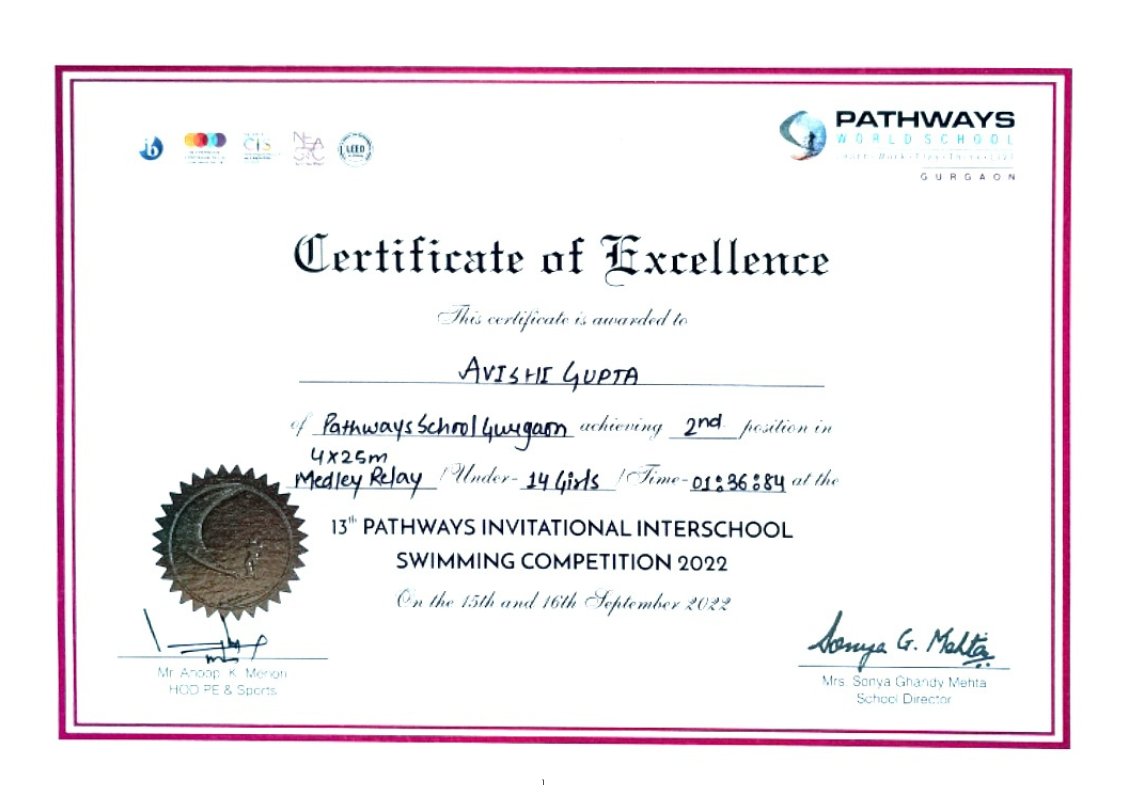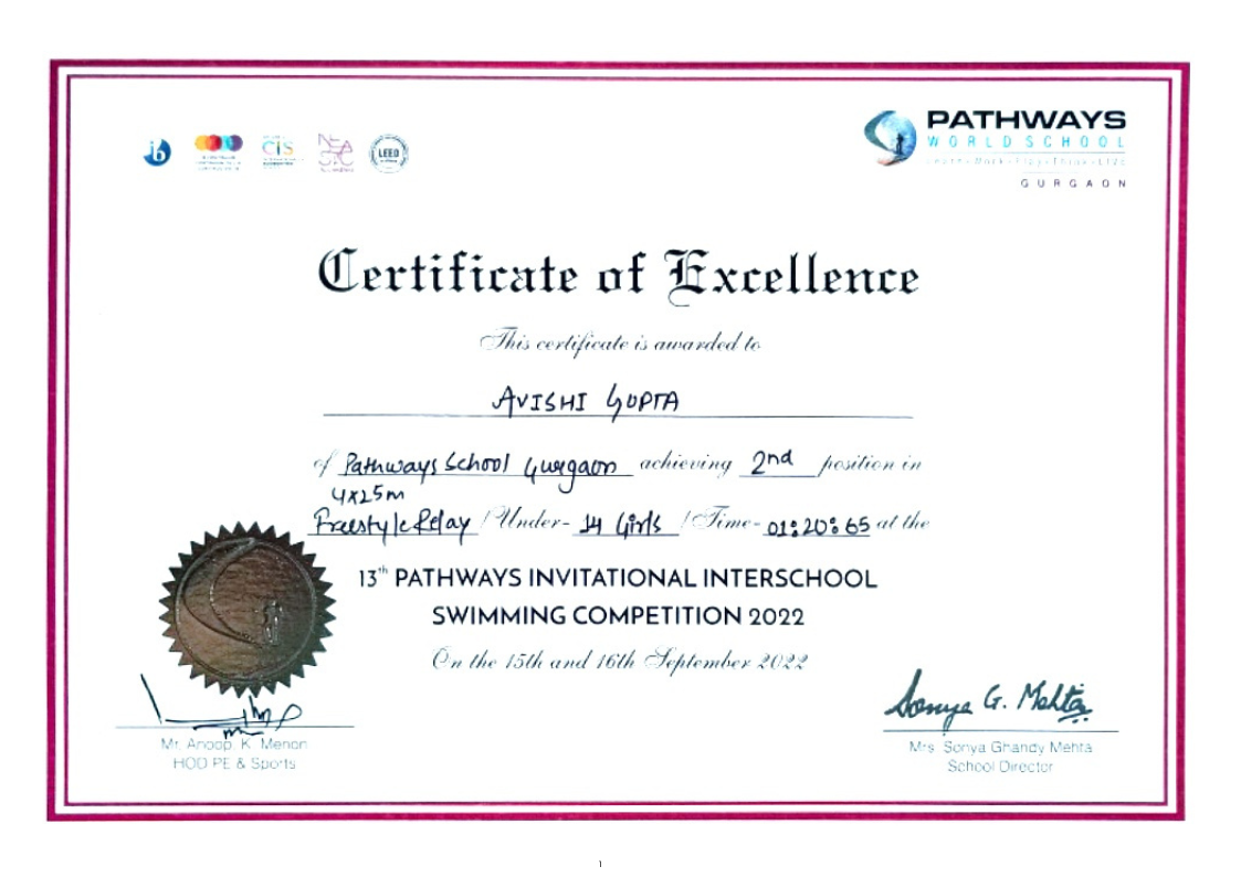Member of U10, U14 & U17 swimming teams (50m & 100m Breaststroke, 800m Monofin); House Captain, Middle Years Programme.